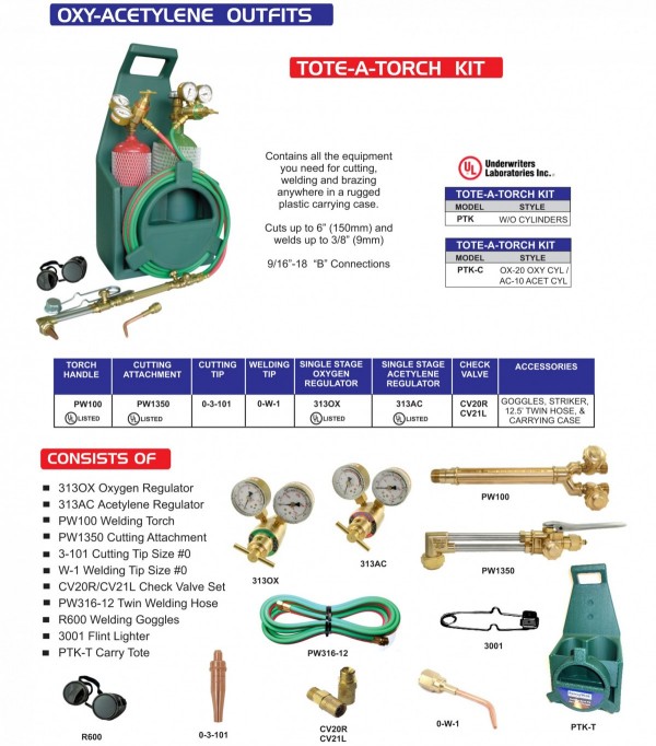 Cylinder Caps, Tip Cleaner, Cable Cutter, Gas Flow Tester, Wire Brushes, Bastard File
