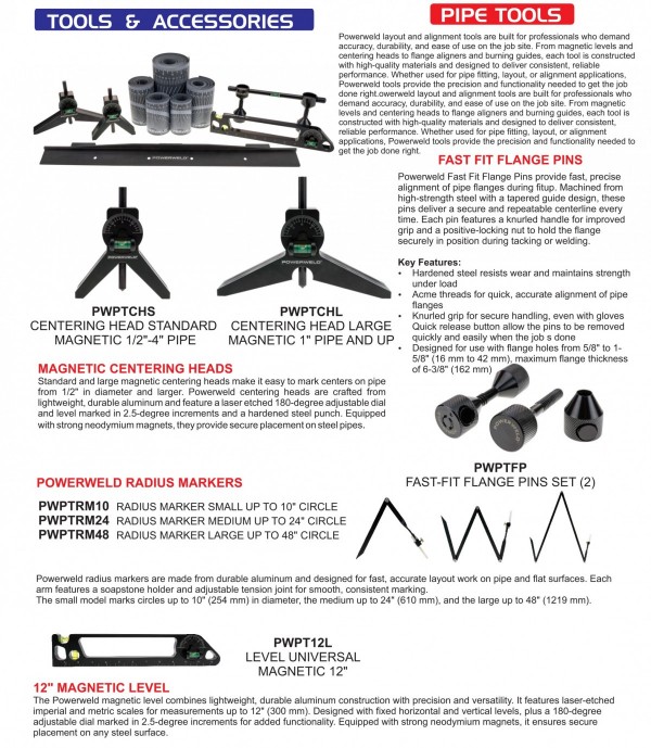 Spool Adapter, Pliers, Welding Table, Lug Crimper, Cable Splicers, TIG Cable Cover, TIG Finger