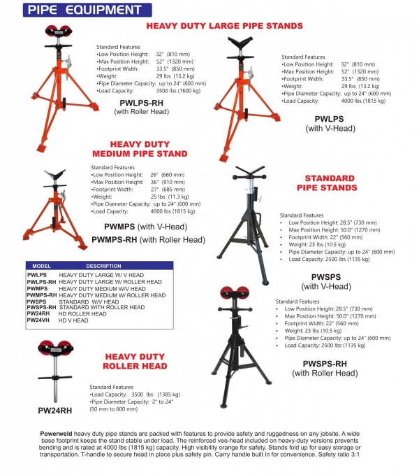Pipe Stands, Pipe Tools, Pipe Wedges, Pipe Clamps and Rap Arounds
