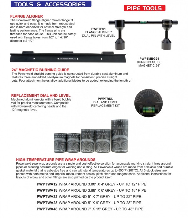 Cylinder Caps, Tip Cleaner, Cable Cutter, Gas Flow Tester, Wire Brushes, Bastard File